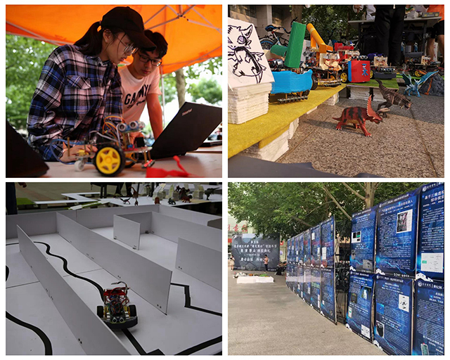 5月28日,“屠龍勇士”決賽拉開帷幕。按照比賽規則,參賽智能車進入KT泡沫板搭建的賽道后,首先要使用紅外線循跡模塊識別復雜的“地形”,再借助超聲波測距模塊穿過幽靜的“山谷”;最后,“勇士”通過手機app控制智能車找到“龍穴”,操縱泡沫小球發射器,完成對“惡龍”的擊殺。精彩的比賽收獲了現場許多同學、老師的聲聲贊嘆。最終,大賽共角逐出3組一等獎,5組二等獎、7組三等獎、3組最佳外觀獎和若干參與獎。