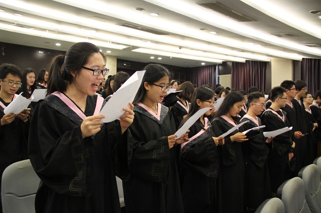 典禮由外國語學(xué)院副書記副院長吳文君主持。外國語學(xué)院黨委書記陳大明教授代表學(xué)院致辭,首先他對2014屆圓滿完成學(xué)業(yè)即將走向社會的全體畢業(yè)生表示熱烈祝賀,同時也提出了幾點期望:一是要適應(yīng)大社會。陳書記結(jié)合當前的就業(yè)率和就業(yè)對口率指出,目前大學(xué)生就業(yè)的形勢不容樂觀,無論是直接走上社會的同學(xué)還是繼續(xù)深造的同學(xué)都要學(xué)會適應(yīng)高速發(fā)展的大社會。二是活到老學(xué)到老。保持不斷學(xué)習(xí)的熱情,在今后工作中繼續(xù)學(xué)習(xí),不斷提高自己獲取新知識的能力。三是堅守底線。要為自己設(shè)立一條道德和工作的底線,要有社會責任感和正確的價值觀,走正確的路。
