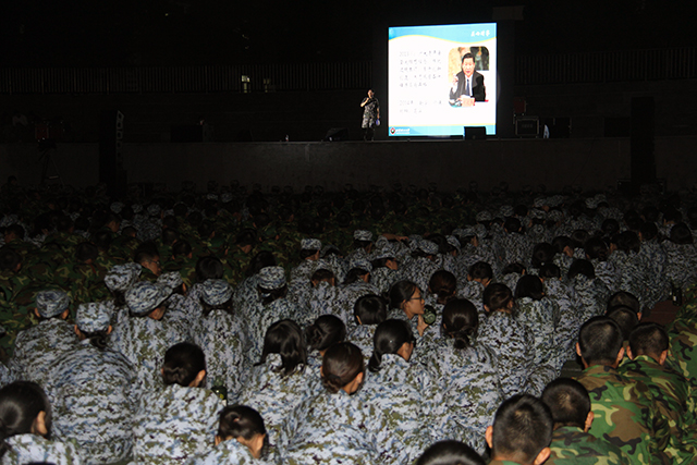 為落實學校2014年新生入學教育相關安排,9月15日,軍訓旅總指揮、學生工作處(部)處(部)長、武裝部部長、心理健康教育與咨詢中心主任郭彥懿為全體參訓學員開展主題為“健康生活,快樂成長”的專題講座,全體3600余名參訓學員到場聆聽。