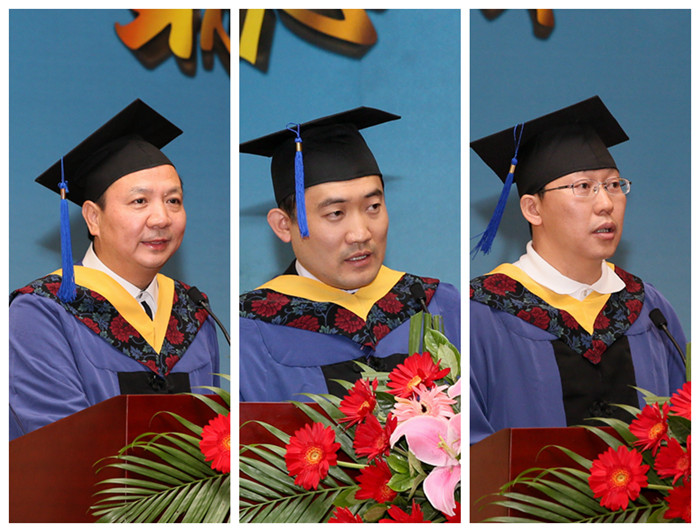 周易同學、孫智同學、滕偉川同學代表分別代表EMBA、MPA、工程碩士畢業生發言,在發言中對學院三年來的培養之恩和老師的諄諄指導表達了誠摯感謝,祝福同學們在各自的事業上取得成績,祝福母校在建設世界一流理工大學的道路上節節攀升,祝福管理與經濟學院在建設國際一流管理學院的過程中續創輝煌。
