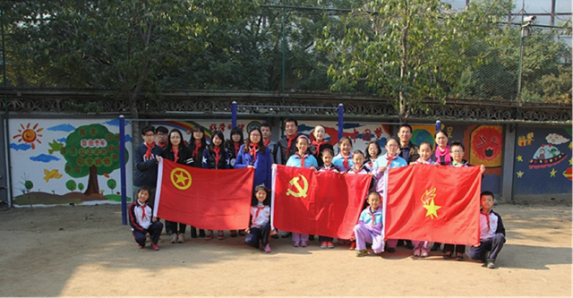 11月3日下午三點,學院副書記、副院長孫飛,分團委書記歐陽哲與設計學院部分學生黨員團員以及宣傳部和霄雯科長共同來到北京理工大學附屬小學的校園。附小直屬黨支部書記李振江、副校長高亞鳳對大家的到來表示熱烈的歡迎,并對設計學院學生為此次活動做的大量準備工作表示感謝。參加活動的小學生們也用他們的方式表達了深深的感謝,他們為設計學院的師生們佩戴紅領巾。部分黨員教師代表和家長志愿者參加了此次活動。
