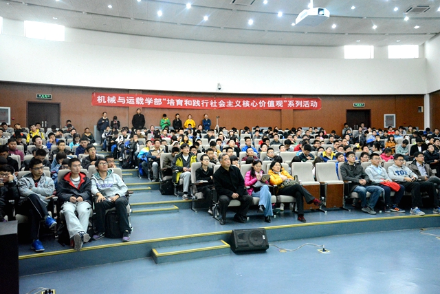 機(jī)械與運(yùn)載學(xué)部“培育和踐行社會(huì)主義核心價(jià)值觀”系列活動(dòng)緊密?chē)@學(xué)校團(tuán)委提出的“信仰•青春•陽(yáng)光”主題教育活動(dòng),以邀請(qǐng)名家講授為主要形式,選取典型歷史事件,生動(dòng)而又充分地詮釋了愛(ài)國(guó)主義精神的深刻涵義,引發(fā)同學(xué)們思考如何在新的時(shí)代和社會(huì)條件下踐行社會(huì)主義核心價(jià)值觀,奉獻(xiàn)社會(huì),投身社會(huì)主義現(xiàn)代化建設(shè)事業(yè),從而實(shí)現(xiàn)人生價(jià)值,在同學(xué)們之間產(chǎn)生了較大的影響,有良好的教育意義,收到了不錯(cuò)的效果。同時(shí),作為機(jī)械學(xué)部“培育和踐行社會(huì)主義核心價(jià)值觀”系列活動(dòng)重要組成部分,機(jī)械學(xué)部“信仰•青春•陽(yáng)光”主題講座也與機(jī)械學(xué)部團(tuán)支部主題團(tuán)日活動(dòng)、時(shí)事論壇、 “青春榜樣”評(píng)選、主題宣傳月及弘揚(yáng)傳統(tǒng)文化系列活動(dòng)等一道,共同組成了完整的“培育和踐行社會(huì)主義核心價(jià)值觀”主題教育活動(dòng)體系,在傳遞社會(huì)正能量,塑造青年學(xué)生正確的世界觀、人生觀和價(jià)值觀,引導(dǎo)青年學(xué)生關(guān)注國(guó)情時(shí)事等方面起到了積極的導(dǎo)向和推進(jìn)作用。