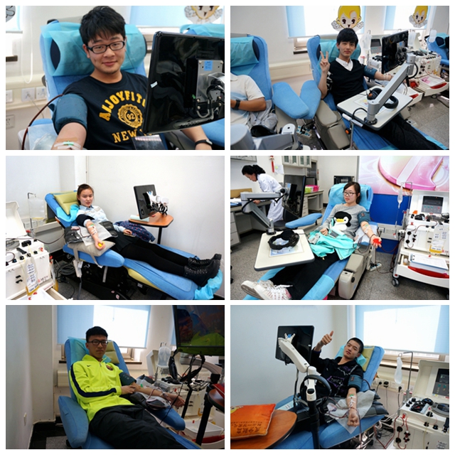 上午11:00,隨著第一位志愿獻血者血小板的成功采集,本次志愿活動也被拉向高潮。人數最多時,我校曾達到過20余位獻血者同時進行采集的時刻,場面蔚為壯觀。在此次成分獻血活動中,共有54人參加成分獻血,42人通過體檢成功捐獻,共計捐獻血小板42個治療量,為我校成分血捐獻事業的更好開展打下了堅實的基礎。同學們捐獻的每一單位血小板,都將被用來拯救他人的生命,想來著實讓人激動不已!實在不得不令人振臂高呼:北理學子,好樣的!