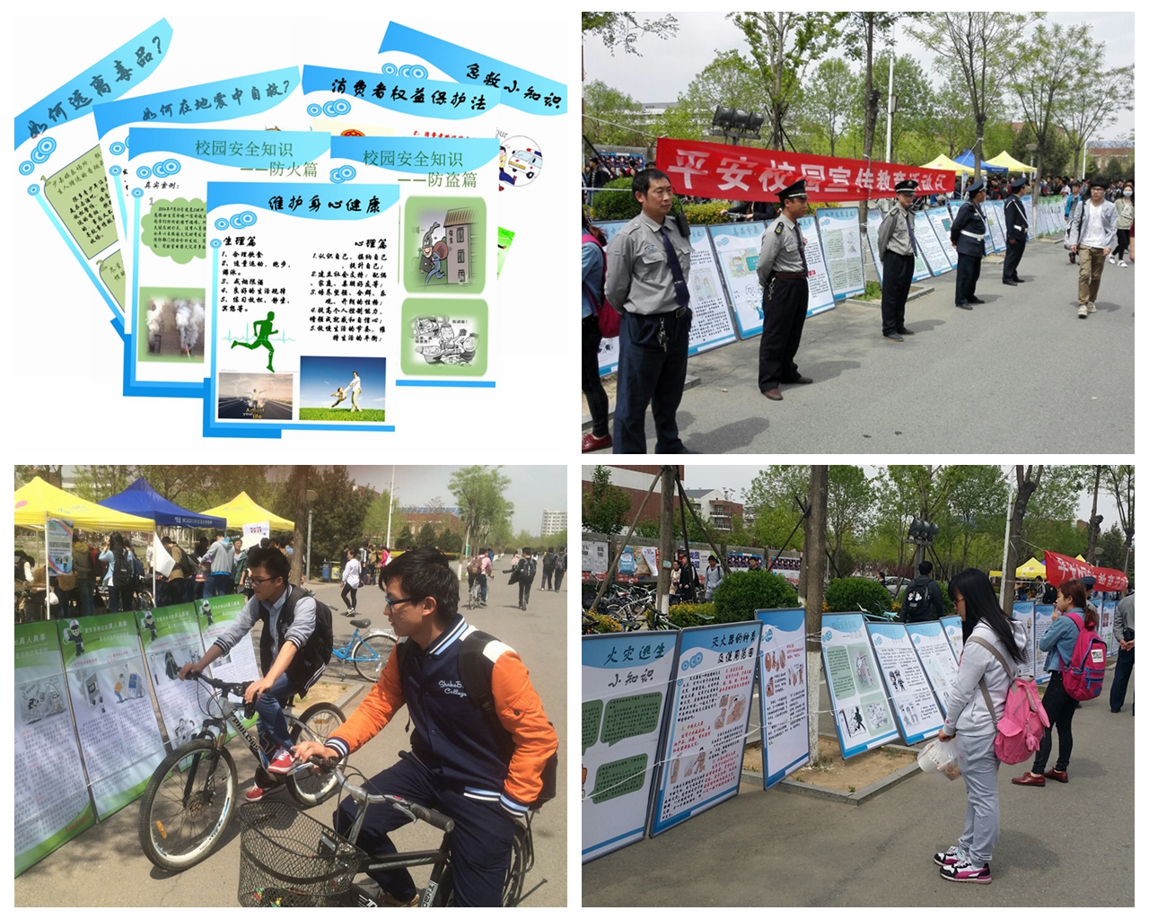 此次活動共展出展板30余塊,內容涉及防火、防盜、防詐騙、地震、毒品、急救、心理健康、消費者權益保護等涉及學生生命、健康和生活方面的知識及典型案例,尤其是展出了2014年良鄉校區學生因詐騙遭受經濟損失的“真人真事”案例集,期望廣大學生能夠引以為戒,提高警惕和防其詐能力,避免受騙事件的發生。