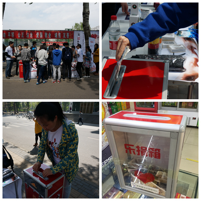 基金會志愿隊的同學于四月下旬在中關村校區開展了“大愛救助”基金現場募捐活動,活動吸引了許多熱心同學的關注。基金會志愿者認真耐心回答同學們提出的關于教育基金會和“大愛救助”基金的相關問題,同時幫助愿意捐獻愛心的同學通過多種捐贈方式進行捐贈。活動現場,有些同學在了解基金的救助先例之后,非常受觸動,慷慨解囊。有的同學看到活動通知而來,放下捐贈款后,就匆匆離去,不愿留下任何信息。