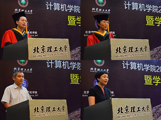隨后,姜子恒同學作為2015屆畢業生代表發言。從第一次實驗室組會到無數次通宵趕論文的經歷,再到豐富多彩的課余生活,姜子恒回顧了自己科研道路上的點點滴滴,表達了對父母、對母校、對老師、對同學的感恩之情。回首艱苦的科研生活,姜子恒認為正是當初的那份“苦”,讓我們品嘗到了現在的這份“甜”,并鼓勵大家要永葆夢想、自信前行。導師們對于畢業生們的期許和不舍,畢業生們對于母校師長的拳拳感恩之情,已融入這感人肺腑的字里行間,引得臺下老師和同學們無不動容。相信在北理工計算機學院求學的歲月,將會成為畢業生們人生道路上最靚麗與最難忘的一道風景線。