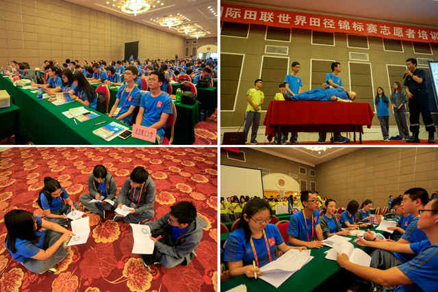 8月17-19日,40名正式志愿者參加了世錦賽組委會組織的集中培訓和實景彩排,就媒體應對與外事紀律、鳥巢情況介紹、禮儀專項培訓、應急處置急救、中國傳統文化、北京城市介紹、世錦賽相關情況介紹及具體崗位培訓進行了學習,并實地、實崗進行演練。