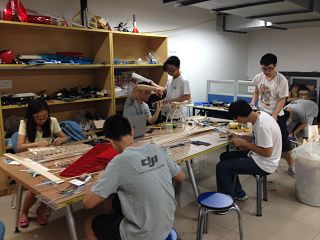 暑期集訓的核心任務是進一步培訓2014級的新隊員并備戰2015年科研類全國航空航天模型錦標賽、“中航工業杯”等大型賽事。每一個項目組都有各自亟待解決的關鍵問題,一次次的計算、模擬、修改圖紙,日以繼夜的辛勞制作最終轉化成了一架架驗證機與無數寶貴的經驗積累。結束了一天的集訓之后,隊員們往往渾身酸痛,疲憊不堪。可是即便如此,每個人都只是愈發努力,從來沒有人抱怨過半句。