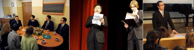 在莫斯科大學藝術系成立十五周年慶祝晚會上,院黨委書記郭宏代表北理工設計與藝術學院致辭,祝賀莫斯科大學藝術系建立15年來取得的豐碩成果,并表示將進一步加強雙方在教學與研究領域的合作。郭宏書記致辭后,莫斯科大學校長薩多夫尼奇·維克多·安東諾維奇對雙方以往學生合作培養與學術交流給予了高度評價。莫大藝術系主任亞歷山大·羅波達諾夫對在該系學習的我院學生表現出的專業素養與學習熱情給予充分肯定,并希望雙方以后能夠在教師學術交流、學術著作出版等方面開展深入合作。
