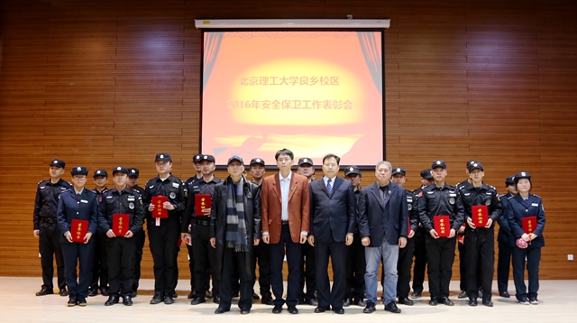 為加強良鄉(xiāng)校區(qū)安全保衛(wèi)工作,樹立典型、表彰先進,良鄉(xiāng)校區(qū)2016年度安全保衛(wèi)工作表彰大會于2017年1月17日舉行。北京理工大學良鄉(xiāng)校區(qū)管理處處長朱光輝、副處長霍俊斌、副處長張磊,北京時代科安保安服務總公司董事長張傳橋、北京國基偉業(yè)物業(yè)管理有限公司董事長李笑天出席表彰會,校區(qū)全體保安員、師生代表共120余人參加表彰會。