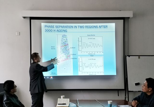 原子探針技術正在發展成為材料微觀結構和成分研究的重要分析手段。沙剛教授作為原子探針三維分析技術應用領域的國際知名專家,通過將原子探針、其它先進實驗分析技術和計算機模擬技術相結合,實現了對材料原子尺度和成分信息的綜合精準把握,促進了中國原子探針技術應用的發展和研究。沙教授概述該分析技術的基本工作原理和其應用發展趨勢,例舉了該技術在雙相不銹鋼中溫脆機理研究上最新應用。講座激起與會師生的濃厚興趣,講座后大家展開了熱烈的討論,與會師生受益匪淺。