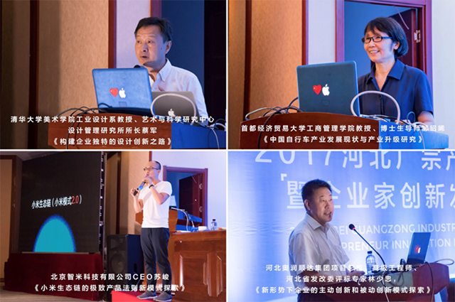 圍繞此次主題講壇邀請的各領域方向的專家有:清華大學美術學院工業設計系教授、清華大學藝術與科學研究中心設計管理研究所所長蔡軍;首都經濟貿易大學工商管理學院教授鄒昭晞;河北奧潤順達集團項目總監、高級工程師林少忠;北京小米生態鏈企業智米科技有限公司CEO蘇峻;北京理工大學設計與藝術學院裝備研究中心副主任徐懸等。 北理工設計與藝術學院副院長姬勇;廣宗縣領導吳建英、文青峰、徐軍嶺;縣自行車童車企業領導、董事長、總經理及其他各相關負責人;政府相關部門負責人等近300余人與會聆聽了專家教授的演講,并進行了深入交流互動。