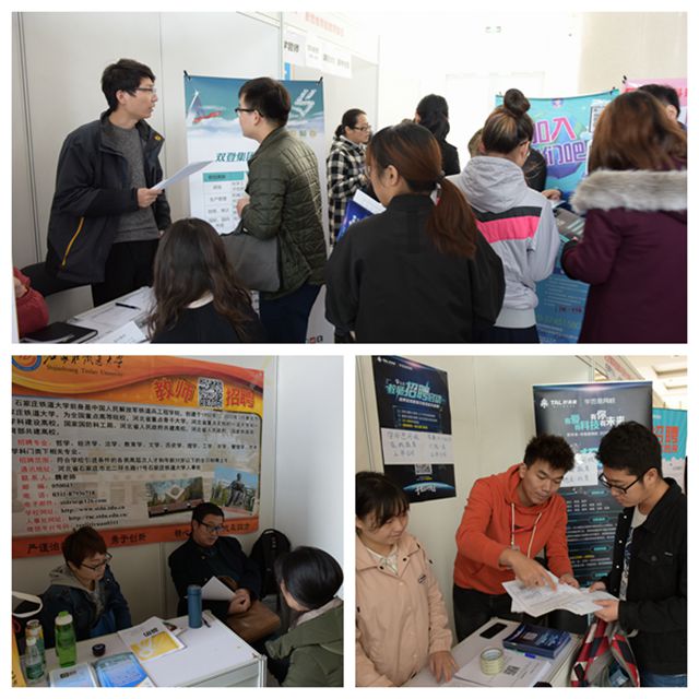 2017年10月31日下午,我校在良鄉校區工業生態樓一層大廳舉辦了文科及基礎學科專場招聘會。石家莊鐵道大學、興業銀行股份有限公司、雙登集團股份有限公司、北京迪文科技有限公司等17家用人單位參加了本次招聘會。