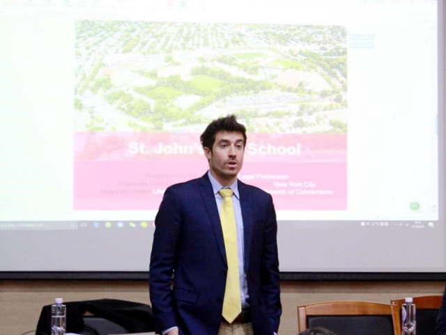 3月9日,Joshua Alter教授和徐琳鈞來到良鄉校區,向法學專業學生詳細介紹了圣約翰大學法學院的基本情況、JD項目、LLM項目和其他交流項目應該如何準備和申請,并回答了學生們的問題,取得了很好的效果,激發了學生對出國交流的興趣。