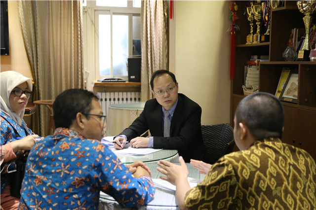 墨邱布安南大學教務處HADRI MULYA DAHLIAR副主任對汪瀅的介紹表示感謝,此行代表團包括通信科學學院、電子工程學院、計算機學院、機械工程學院及管理學院各位院領導和講師。通過與北理工相應學院負責人的探討,將進一步擴展本科雙學位的專業領域,促成碩士“1+1”雙學位的可能性以及探討了教學管理模式。