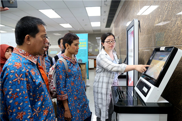 會談結束后,墨邱布安南大學代表團參觀了圖書館,親自體驗了系統檢索功能,并對圖書館方便的借還書系統操作表示贊揚。
