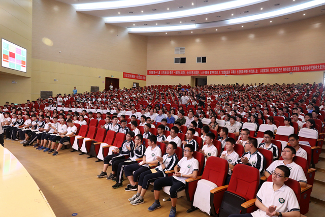 北理工材料學院黨委副書記、河北招生工作組副組長張艦月帶領材料學院本科生王新宇、博士生呂芃浩、牟鴿,回顧了北京理工大學與衡水中學的淵源,引發衡中學子強烈的北理認同感,3名學生代表分別以《矛與盾的前世今生》《科技與和平》《速度與激情》為題進行了精彩的學術演講,展示了裝甲與反裝甲、CL-20、新能源電池等前沿科技,使衡水中學學子深刻感受科技的魅力,樹立科技精神,現場反應熱烈。