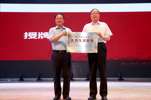 衡水中學校長張文茂致辭。他對北京理工大學師生走進衡水中學表示歡迎,對北京理工大學在河北招生宣傳工作取得的優異成績表示熱烈祝賀,對越來越多的衡水中學學子能夠在北京理工大學成長成才表示欣慰,并表示衡水中學將以此為契機,學習借鑒北京理工大學好的經驗和做法,不斷探索創新人才培養的新方法、新舉措,為培養德智體美全面發展的社會主義建設者和接班人而不懈奮斗。