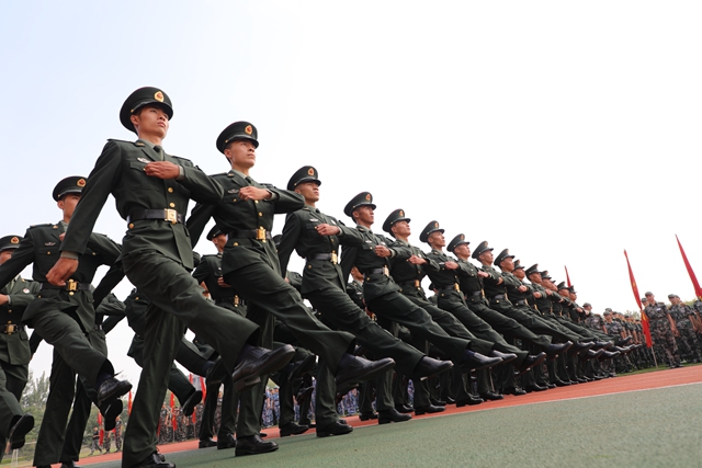 典禮上,承訓(xùn)教官進(jìn)行了精彩的隊(duì)列動(dòng)作示范,他們整齊的動(dòng)作與慷慨響亮的口號(hào)為全體參訓(xùn)學(xué)員樹立了優(yōu)秀的楷模形象,展現(xiàn)了承訓(xùn)教官的颯爽英姿。