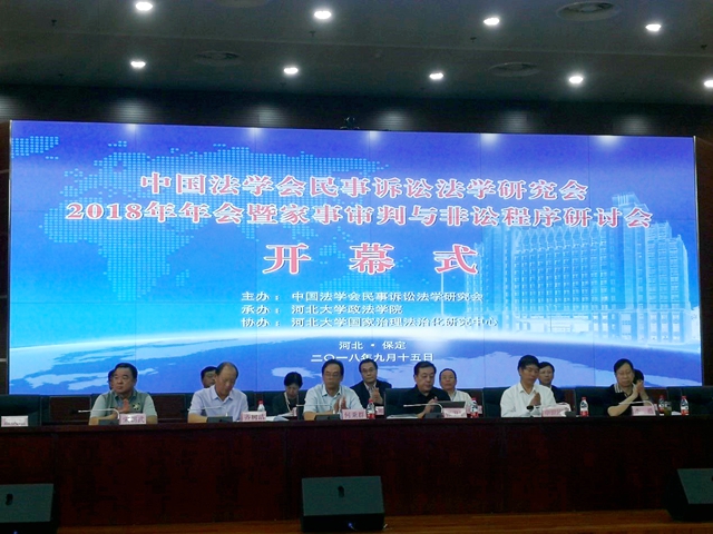 9月15日,一年一度的中國民事訴訟法學研究會年會在河北保定召開。此次會議由中國民事訴訟法學研究會主辦,河北大學政法學院承辦。中國法學會、河北省高級人民檢察院、河北省法學會等單位領導,清華大學、北京大學、中國政法大學、北京理工大學等全國各大高校民事訴訟法學專家學者,地方司法機關、法律服務機構的法律實務工作者以及新聞出版機構人員共計200余人參加了此次會議。本屆年會的會議主題為“家事審判與非訟程序”。法學院教授張艷麗、副教授于鵬、博士李亞楠應邀參加本次年會,張艷麗在大會上作主題報告。