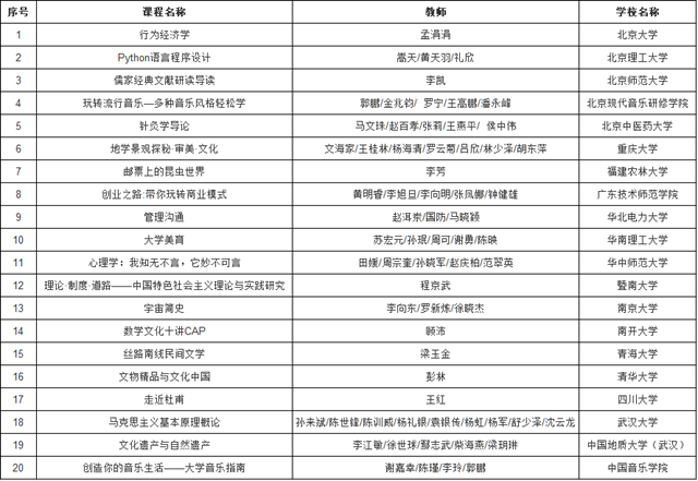 附“最美慕課—首屆中國大學慕課精彩100評選展播活動”一等獎獲獎名單: