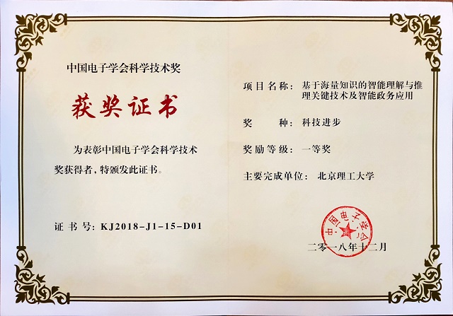 北理工計(jì)算機(jī)學(xué)院獲“中國電子學(xué)會科技進(jìn)步獎(jiǎng)”一等獎(jiǎng)