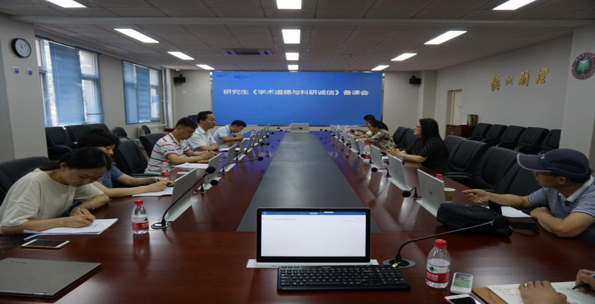 為使學校研究生更好地貫徹落實中共中央辦公廳、國務院辦公廳印發的《關于進一步弘揚科學家精神 加強作風和學風建設的意見》(以下簡稱《意見》),6月24日,研究生院、人文與社會科學學院組織了《學術道德與科研誠信》研究生課程任課教師集體備課,就如何結合實際生動活潑地讓《意見》精神進課堂,進行了廣泛深入地研討。研究生院常務副院長王軍政、培養辦主任陳旵明、人文與社會科學學院《學術道德與科研誠信》課程組全體教師和研究生助教代表參加了集體備課和座談交流。