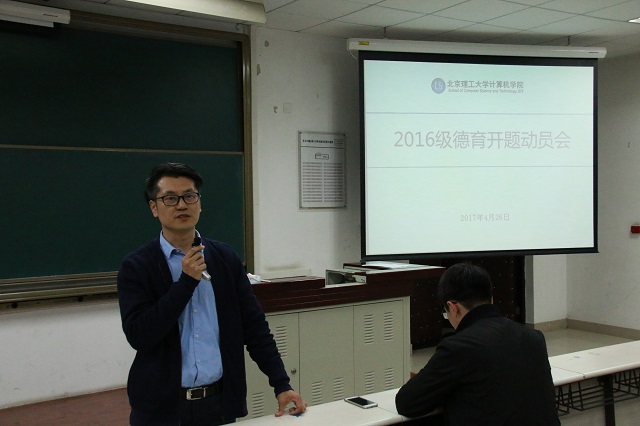 2017年4月26日18:00,北理工計算機學院2016級本科生德育開題動員會在良鄉校區綜合教學樓A105舉行。計算機學院黨委副書記、副院長奚英倫,分團委書記郝志敏出席本次動員會,會議由2016級本科生輔導員惠寧主持。