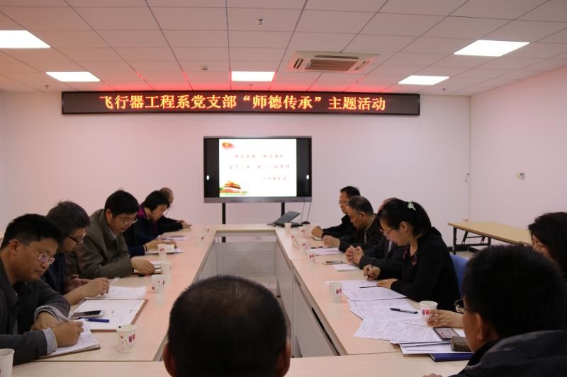 為貫徹落實習近平總書記在十九大報告中提出的“加強師德師風建設,培養高素質教師隊伍”重要指示,弘揚“愛校、愛崗、敬業”的優秀品質,增強教師的時代責任感和使命感, 3月30日,宇航學院飛行器工程系黨支部開展“師德傳承”主題黨日活動,邀請飛行器工程系退休教師文仲輝教授作主題發言,宇航學院黨委書記曲虹、黨委組織部孫碩以及全體支部黨員參加了會議。