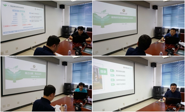 研究生院培養(yǎng)處王超、招生處孫樂平、學(xué)位辦趙寧、質(zhì)量辦崔睿四位老師通過認(rèn)真研讀研究生教育相關(guān)論文、查閱文獻(xiàn)、調(diào)研總結(jié)思考等,分別作“工程博士培養(yǎng)模式”“提高研究生生源質(zhì)量”“加強(qiáng)導(dǎo)師立德樹人職責(zé)”“信息化建設(shè)分析與思考”四個方面的報告,不僅與國內(nèi)外著名高校進(jìn)行了對比分析,而且也提出了新的工作思路和舉措,與會人員進(jìn)行了相關(guān)方面的深入討論和交流,整個活動持續(xù)兩個半小時。