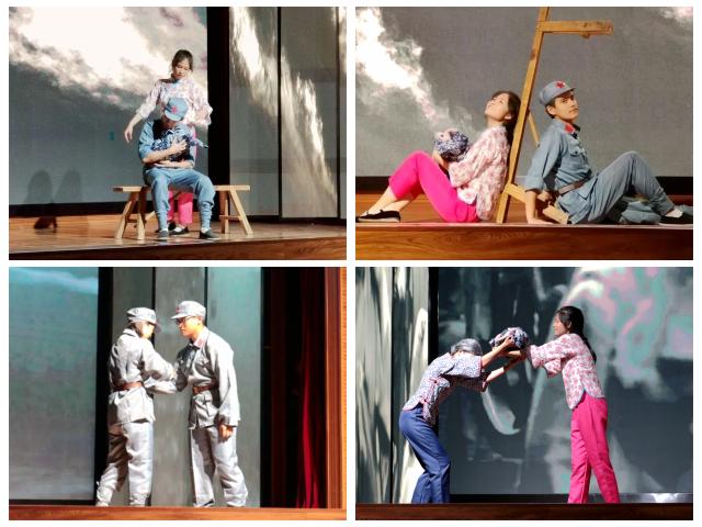 話劇展演于19:00準時開始,共分為《序》《井岡兒女》《星火凌云》《青谷長歌》《十送紅軍》和《尾聲》六個部分,以一位革命戰士后代讀家書、回憶父輩故事的方式再現了革命戰爭時期共產黨人為民族解放而浴血戰斗的故事和井岡人民與工農紅軍的魚水之情。小丹飾演者黃沁怡,秋生飾演者張云瑞以及其他參演人員用飽滿的熱情和投入的演出向觀眾傳達了老一輩革命者心懷理想,不畏艱險,為民族解放而不懈奮斗的精神與情懷。