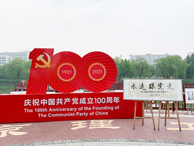 2021年,在慶祝中國共產黨百年華誕的重大時刻,在“兩個一百年”奮斗目標歷史交匯的關鍵節點,按照學校黨委統一部署,設計與藝術學院黨委在全體師生中開展黨史學習教育,并充分發揮學科專業優勢,組織廣大學生開展建黨百年專題創作活動,通過中國畫、油畫、版畫、素描、招貼設計等多種形式,用時代新人的筆觸呈現中國共產黨一百年來矢志踐行初心使命、篳路藍縷奠基立業、創造輝煌開辟未來的偉大奮斗歷程,引導師生做到學史明理、學史增信、學史崇德、學史力行。