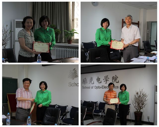 光電學院書記郝群教授代表向各位專家委員頒發了聘書,專家委員會由教務處、校團委和光電學院的老師組成。