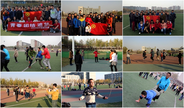 05111331團(tuán)支部、05111332支部在操場共同開展了“憶童年”主題活動(dòng),踢毽子、跳大繩、百米跑,兩個(gè)支部的同學(xué)在汗水中享受運(yùn)動(dòng)的快樂,在比賽中體驗(yàn)合作與競爭。04011305團(tuán)支部舉行了“生命不息,運(yùn)動(dòng)不止”主題團(tuán)日活動(dòng),跑步熱身、跳大繩、羽毛球?qū)梗缮璧绞炀殻瑥莫q豫到熱情,同學(xué)們在追逐中熱情高漲,你追我趕,用笑鬧聲歡呼聲溫暖了這個(gè)寒冷的冬日。05611302聯(lián)合05611301支部舉辦了激動(dòng)人心的友誼籃球賽,一次次成功的投籃、籃下?lián)寯酂o不體現(xiàn)出團(tuán)隊(duì)的默契配合,中場的女生投籃巾幗不讓須眉。