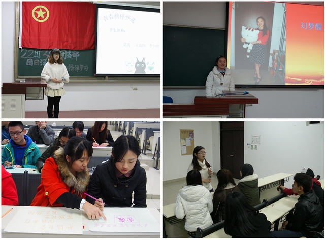 建立學院、團支部青春榜樣庫,發(fā)揮榜樣示范作用。各團支部推選優(yōu)秀的團員青年作為青春榜樣,充實學院青春榜樣庫,以發(fā)揮榜樣的示范激勵作用。各團支部根據(jù)社會主義核心價值觀基本內(nèi)容和“勤學、修德、明辨、篤實”的要求,在科研創(chuàng)新、品學兼優(yōu)、學生領(lǐng)袖、藝術(shù)體育等六大類中以民主投票方式推選青春榜樣,號召團員青年學習青春榜樣,發(fā)揮青春榜樣的引領(lǐng)作用。