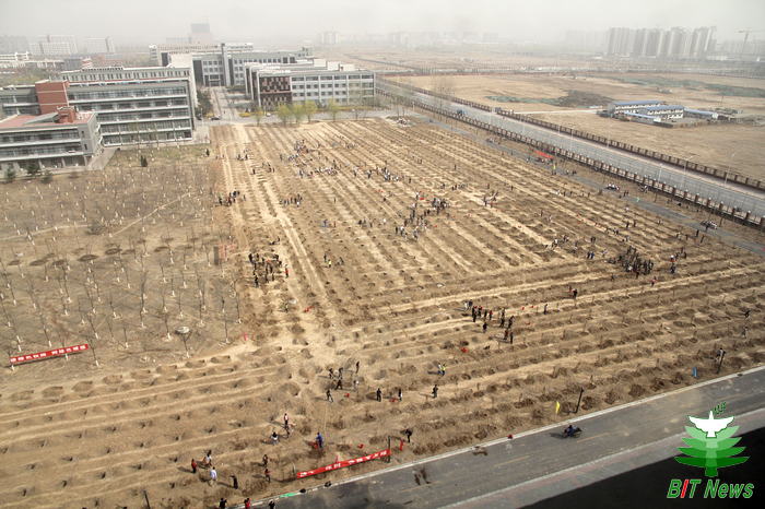 2015年3月29日上午9點,北京理工大學在良鄉校區組織開展春季植樹活動,校黨委書記張煒、校長胡海巖、常務副校長楊賓、常務副書記趙長祿、副校長楊蜀康、副校長楊樹興、副校長副書記李和章、紀委書記楊志宏、副校長陳杰、副校長項昌樂與400余名師生一道,在良鄉校區南區工業生態樓北側和北區丹楓園C棟南側共同植下2700棵樹苗。