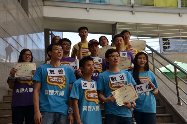 5月4日上午9點(diǎn)至12點(diǎn),由校團(tuán)委主辦,校研究生會(huì)承辦的“奔跑吧!青春!”五四校園奔跑大賽在北京理工大學(xué)中關(guān)村校區(qū)舉行?;顒?dòng)旨在引導(dǎo)青年學(xué)生繼承、發(fā)揚(yáng)五四精神,開拓創(chuàng)新,把社會(huì)主義核心價(jià)值觀融入校園生活,為廣大青年學(xué)生提供一個(gè)在奔跑中團(tuán)結(jié)協(xié)作、展現(xiàn)自我的平臺(tái)。此次活動(dòng)獲得了全校本科生、研究生的積極響應(yīng),共有11組選手報(bào)名參加。