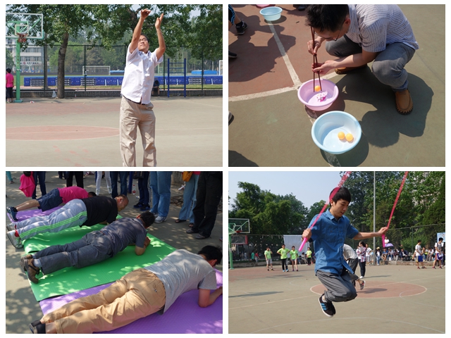 。。運(yùn)動(dòng)會(huì)各項(xiàng)比賽正進(jìn)行的激烈無(wú)比,南操場(chǎng)的教師運(yùn)動(dòng)會(huì)和研究生趣味運(yùn)動(dòng)會(huì)也正如火如荼的進(jìn)行著,老師和研究生們?cè)诰o張的科研和教學(xué)工作之余,積極參與體育運(yùn)動(dòng),體驗(yàn)運(yùn)動(dòng)的樂(lè)趣,鍛煉強(qiáng)健的體魄。為了增進(jìn)師生友誼,老師和同學(xué)們進(jìn)行了一場(chǎng)激烈無(wú)比的拔河比賽,雙方各出健將,全力以赴,加油喝彩聲不絕于耳,盡顯生命學(xué)院師生奮勇拼搏的精神面貌。