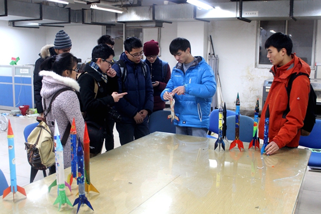 華電學生參觀團首先前往宇航科技創新實踐基地進行參觀,基地為參觀團介紹了招新考核小火箭的簡單原理和制作技巧,同時介紹了飛翼飛行器和全國航空航天模型錦標賽的基本情況。