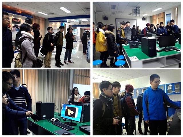 在引導員帶領下,我們邀請華電學生參觀團前往北京理工大學基礎教育學院大學生科技創新實踐基地進行參觀,在基地展廳為代表團展示了近幾年來低年級學生科技創新成果;在機械加工坊,講解員介紹了具有高精度雕刻能力的激光雕刻機的使用情況;在電子坊,代表團了解了電子信息類大創的基本情況及科創成果;在3D創意坊,華電的同學們體驗了數據手套和3D電影,并在機電控制坊觀看了“超級無敵仿真模擬機器人”的表演,最后在生態坊觀看了各種“高大上”的生化類儀器。