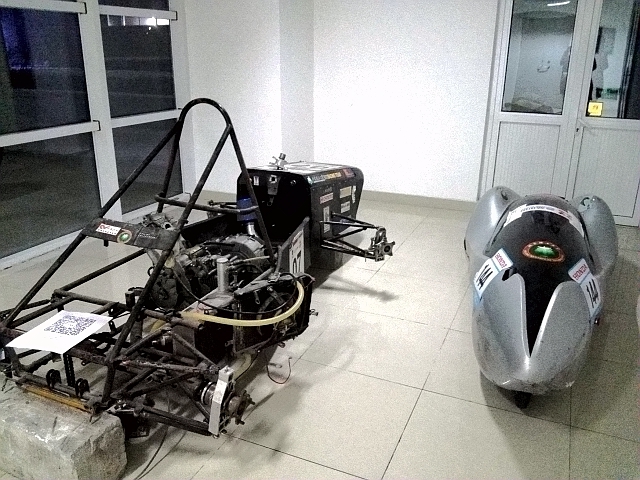 隨后參觀交流團來到北理工大名鼎鼎的黑鯊一號和翼昇電動賽車旁,北京理工大學汽車聯盟的介紹人員向華電的代表團介紹了黑鯊一號的輝煌戰績——奪得2010年中國大學生方程式賽車比賽的首魁,還有我校學生自己摸索設計的翼昇節能車的驕人戰果。