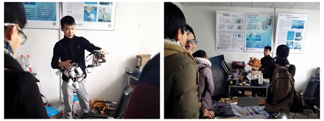 BIT機器人創新基地為代表團展示了我校自主研發和設計的機器人,其中主要對神雕俠侶舞蹈機器人,飛天靈蛛機器人和3D打印機進行了講解,參觀的同學不時發出驚嘆聲,感嘆我校學生設計的機器人的巧妙和獨具一格。基地負責人還介紹了我校機械臂設計大賽的有關情況。