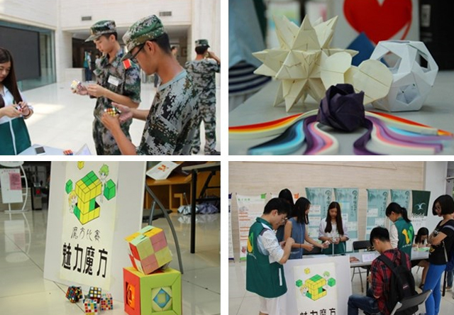 為配合本次贈書活動,圖書館組織微塵志愿者協會和折紙社開展了“魔方還原大賽”,評選出還原魔方用時最短的三位同學,并邀請他們參加贈書儀式。