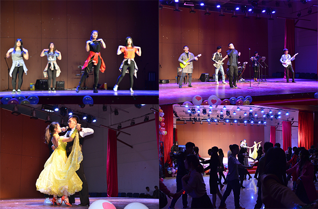 舞會現場,Light樂隊實力獻唱燃動全場,熱情洋溢的兔子舞更是迅速活躍了全場氣氛,舞會參與者伴著歡快的節奏聚集在了舞池中央。在交誼舞教學環節,舞者們手持神秘面具,兩兩為伴,輕手慢挽,翩翩起舞。舞池中央,或生澀,或嫻熟,每一個側身,每一個旋轉,都是今晚最美的綻放。貫穿整場舞會,還有精心準備的熱舞表演及獨奏伴唱,青春洋溢,歡聲笑語,是送給2017屆畢業研究生最真摯的祝福,前程似錦,愿歡樂常伴心間。舞會中穿插的妙趣橫生的游戲環節,也將全場氣氛再一次推向了高潮,猶如生活中不可預知的插曲,在不經意間帶去驚喜和感動。