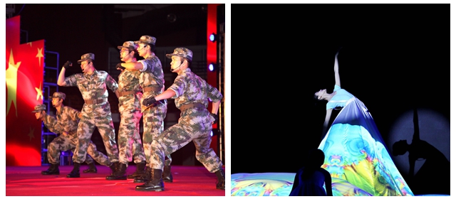 相識北理工,青春夢飛揚。在開場舞《擁抱新時代》中,各學院畢業生代表以走秀的形式閃亮登場,在巨幅校旗的覆蓋下,同學們脫下學位服,亮出各具特色的畢業文化衫,象征著走出母校,走上建功立業的新征程。近兩屆深秋歌會中脫穎而出的校園歌手在情景歌舞《印象?北理工》中,演繹了同學們從入學到畢業的經典場景。留學生代表帶來的舞蹈《寶萊塢》,既反映了留學生在北理工校園學習實踐成長的經歷,更反映了學校積極服務“一帶一路”等國家重大戰略、加強國際交流合作的豐碩成果。