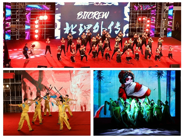 綻放北理工,青春不散場。北理舞團BITcrew用精心編排的大型群舞《北理外傳》,展現了北理工學子的斑斕青春,將全場觀眾激情“點燃”。武術表演《中華英雄》中,在首都高校武術比賽中奪得佳績的高水平武術隊引發如潮掌聲和歡呼。設計與藝術學院舞蹈《京韻春曉》以古典舞新編的藝術形式,表達了對中華優秀傳統文化的傳承與創新,展現了新時代大學生積極向上、樂觀陽光的心態。