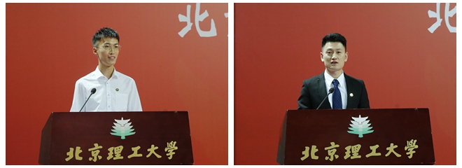 化學與化工學院博士生陳立偉代表全體2019級研究生新生發言,他表示將不忘初心,以創新為己任,勇攀學業高峰,以不懈奮斗踐行新時代青年的使命。校研究生會主席、機械與車輛學院博士生趙正陽代表在校生發言,他分享了自己眼中北理工人的情懷、擔當和堅持,鼓勵同學們仰望學術星空、踏實求索篤行。