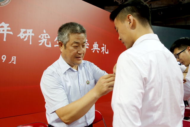 在激昂的北京理工大學校歌聲中,校領導為2019級研究生新生代表佩戴校徽,標志著2019級研究生已經正式成為北京理工大學的一員,他們將秉承“延安根、軍工魂”,努力成長為德智體美勞全面發展的中國特色社會主義建設者和接班人!