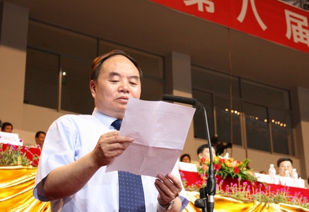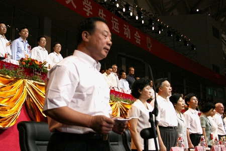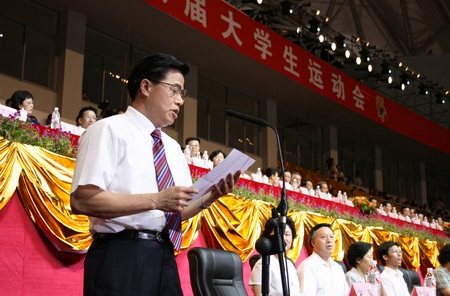 第八屆全國大學(xué)生運動會主席團主席、組委會主任、教育部部長周濟致開幕詞,代表教育部、國家體育總局、共青團中央和大會組委會,向各代表團、大學(xué)生運動健兒們和各位來賓表示熱烈歡迎,向長期辛勤耕耘在高校體育園地的老師們表示崇高敬意,向承辦本屆大運會的廣東省委、省政府和廣東人民卓有成效的工作表示衷心的感謝。