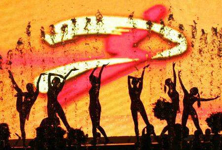 青春的“天使”托起一輪“太陽”飛向天際,象征新世紀的大學生如初升朝陽般充滿活力。鋼鼓聲聲,80名紅衣鼓手擊打出振奮人心的旋律,健美操、藝術體操、擊劍、武術、呼啦圈……350人一起踏著運動的節拍,盡情展現大學生的運動風采。